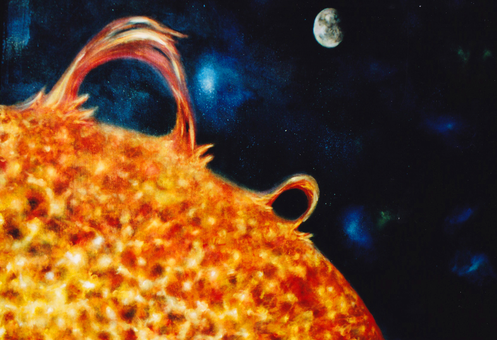 Habitot is based in Berkeley CA. They commissioned me in 2001 to paint this space mural for their space exhibit. I really enjoyed painting this on such a large canvas. I was pregnant with my second during this time so it was quite the challenge! My intention was to not make any black space actually black. So the black areas are made of many colors. Difficult to see in any photograph. It was a little disheartening to see it in the space at the museum as they stuck the glow in the dark stars on the canvas! A learning moment to keep calm!